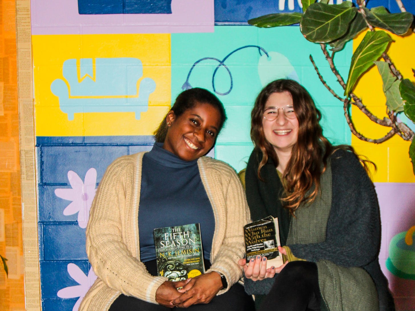 People Read Books by Katie Garcia at Charlotte’s Silent Book Club hosted by That’s Novel Books. Photography by Tyree Trice. Mural by Maddyebbert.art.